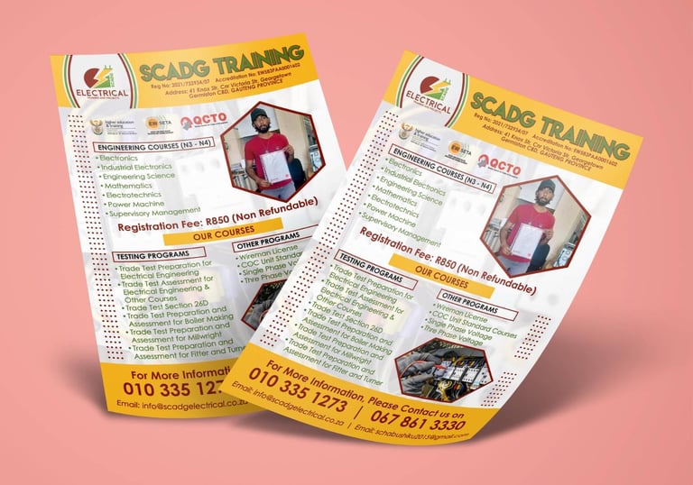 SCADG Electrical is an QCTO and EWSETA Accredited Training Centre based in Germiston. We specialise in Basic Electrical Training, Trade Test Preparation & Trade Testing and Wireman's Licence.