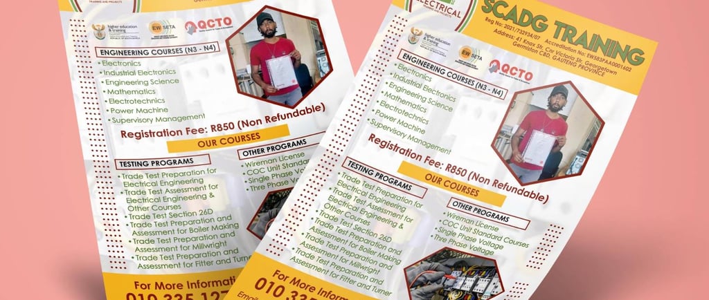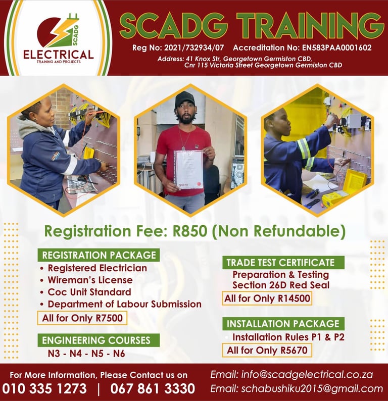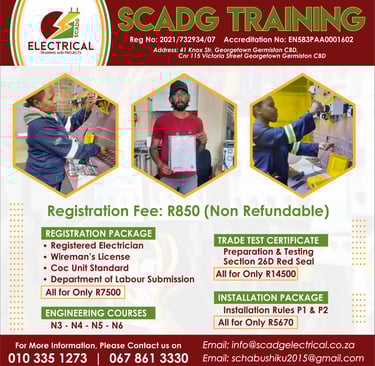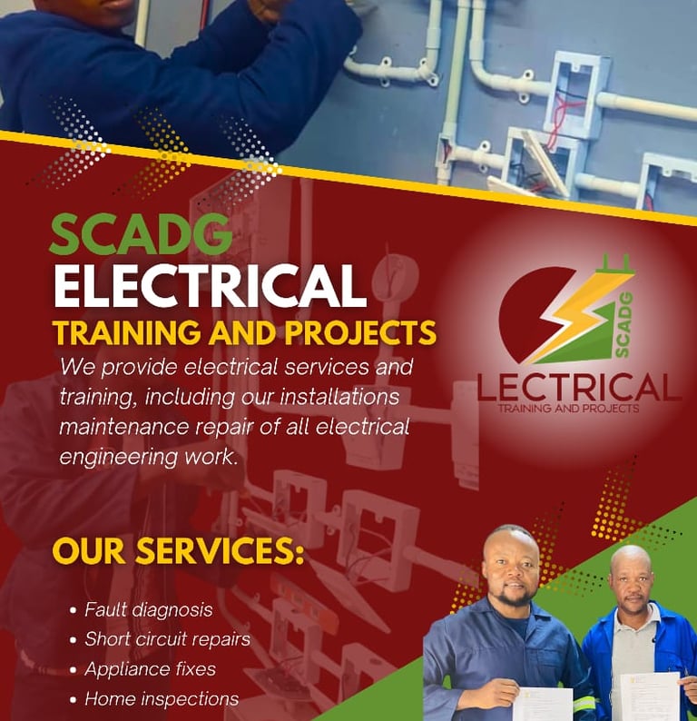 At SCADG Electrical, we are passionate about shaping skilled, confident, and job-ready electricians. Based in the heart of Germiston, South Africa, our training centre is QCTO and EWSETA accredited, ensuring our students receive top-quality, industry-recognised education.